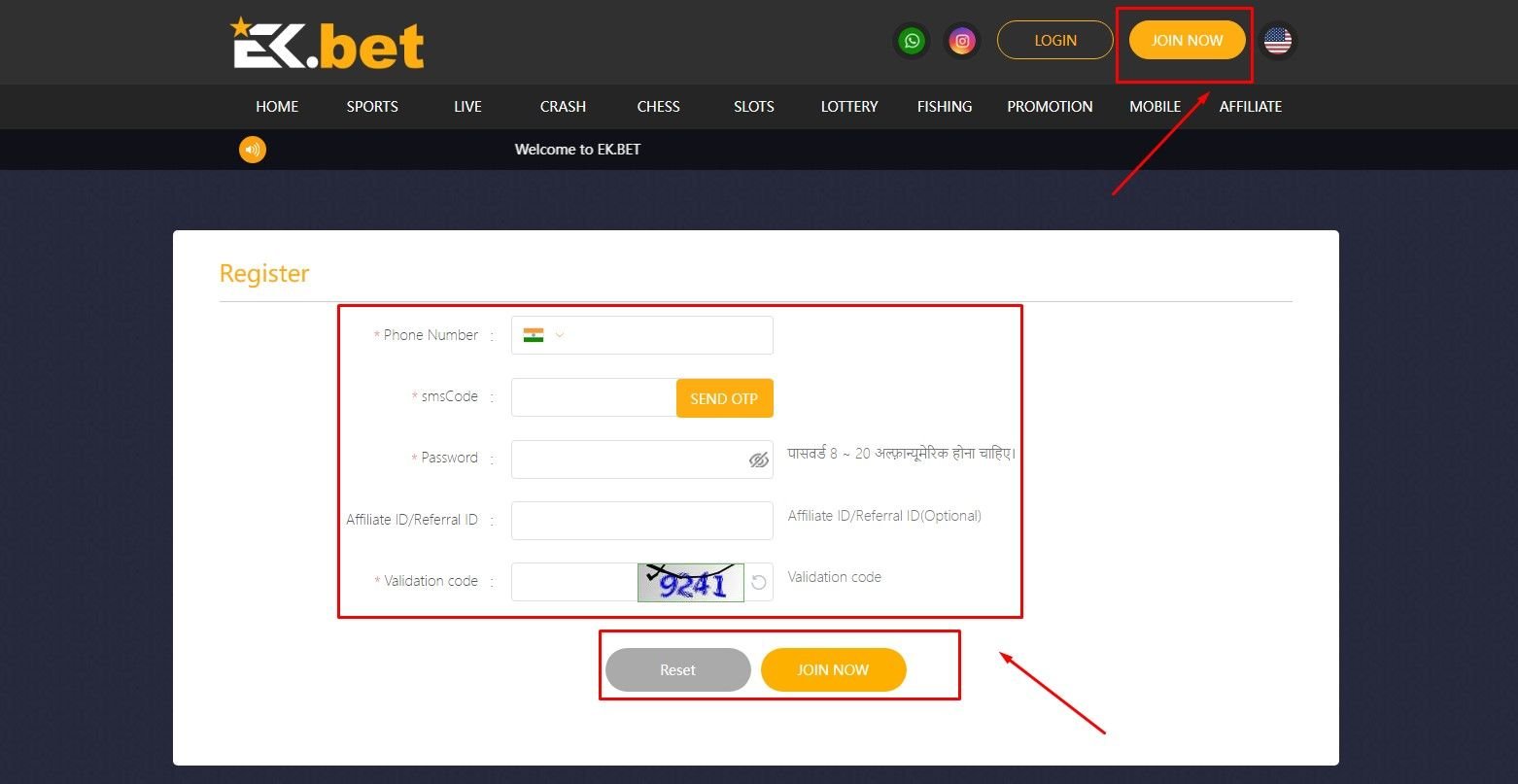 1. Sign in to your EK BET account.