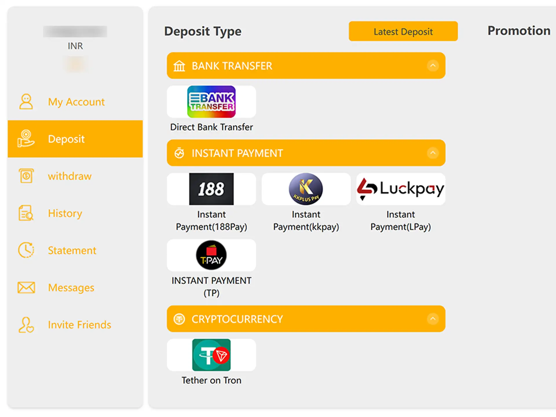 1. Select “Paytm” or “PhonePe” in the deposit section.